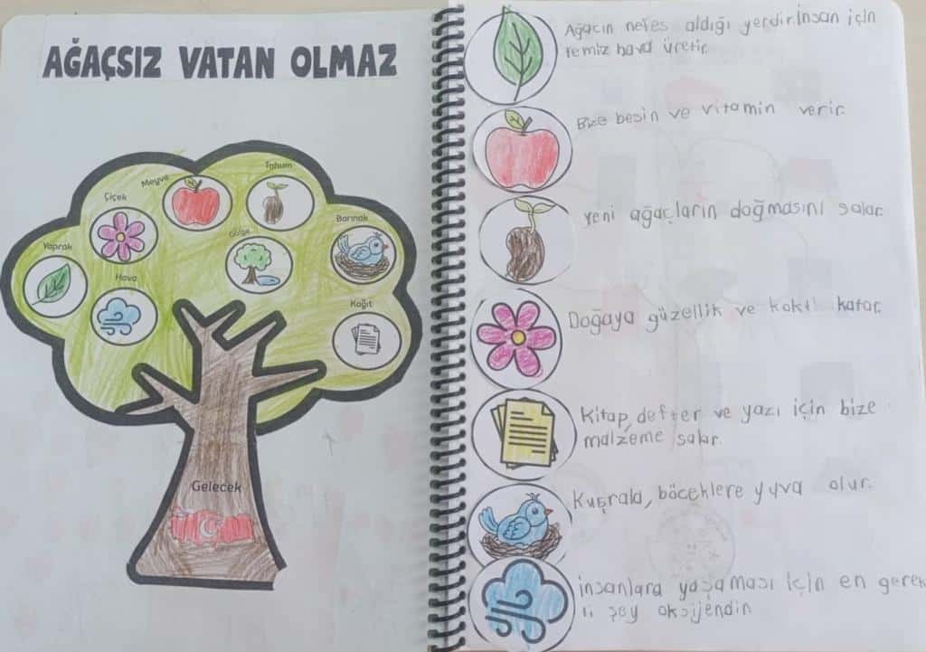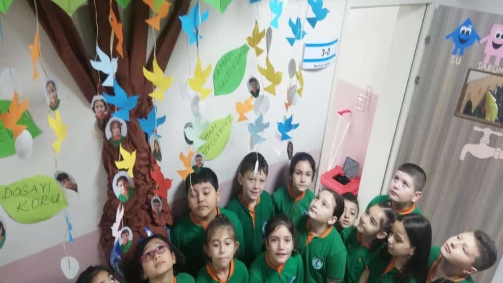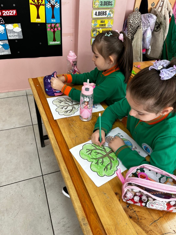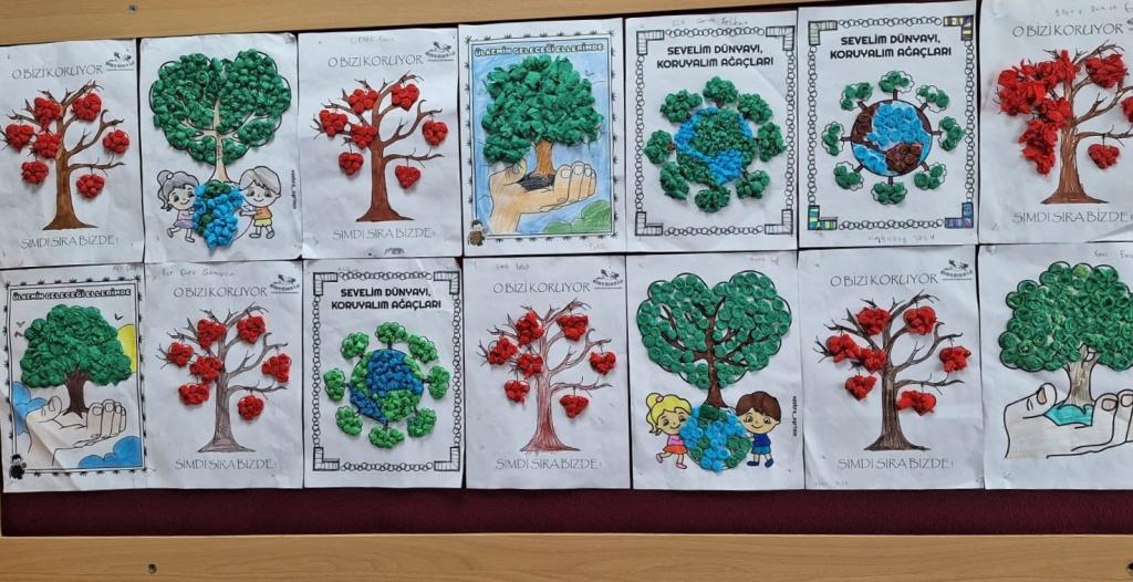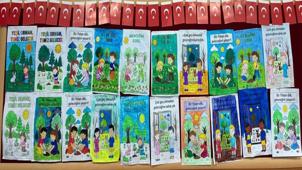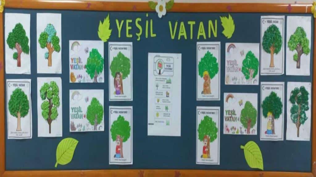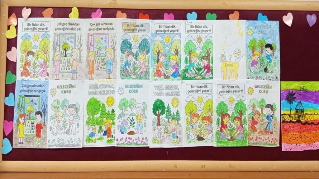 Okulumuz öğrencileri "YEŞİL VATAN Benim Okulum Geleceğe ÇARE" Projesi Eylül ayı etkinliklerini "Tohum,Toprak ve Temiz Hava" teması kapsamında . sınıflarında izledikleri "YEŞİL VATAN " konulu videolardan öğrendiklerini, Görsel Sanatlar derslerinde yaptıkları boyama ve afiş çalışmaları , Müzik dersinde hep birlikte söyledikleri ve öğrendikleri " Tohumlar Fidana" isimli şarkı ile pekiştirdiler. Öğrencilerimiz ayrıca ; Türkçe dersine uyumlu olarak doğada kitap okuma etkinliği yaparak "Tohumun Öyküsü " konusunu işlediler. Öğrencilerimiz yaptıkları çalışmaları okul ve sınıf panolarında sergilerken ; geri dönüştürülebilir , doğa dostu malzemelerle okul koridoruna hazırladıkları " Ağaç Hayattır" ve "Yeşil Dünya maketleri büyük ilgi gördü.